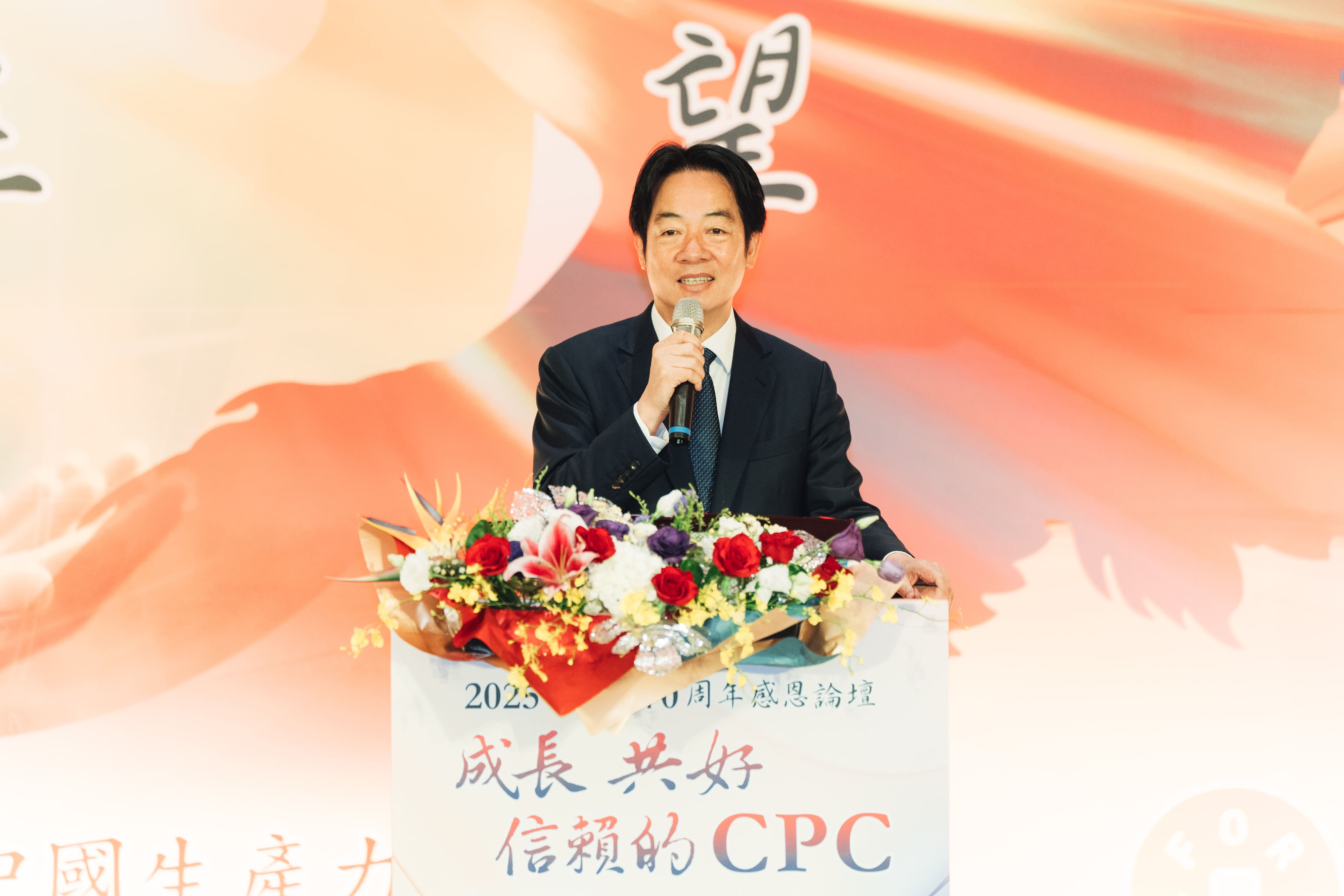 總統賴清德不僅親臨盛會給予祝福,亦讚賞許董事長把自身經營企業的成功經驗,透過CPC擴散至各產業,對臺灣的貢獻有目共睹;更藉著亞洲生產力組織(APO)的積極參與,讓全世界看見臺灣。賴總統致詞時表示,今年是臺灣經濟崛起之年,本經濟成長率達預計超過5%,將為亞洲四小龍之首,並超過歐美多國,這是臺灣整體與各產業共同努力之成果。當前各國都面對數位與淨零轉型、地緣政治變動與全球經貿重整之挑戰,因應這些挑戰,政府將以創新經濟、均衡臺灣、包容成長與完成2050淨零轉型為目標,提供各種政策資源來協助企業。預計在2030年之前,挹注9000億帶動民間投資,並編列4兆元來推動國家能源轉型。未來更將推動「AI十大建設」,投入量子科技、矽光子與機器人等三大關鍵技術領域之研發,協助百工百業落實AI應用,以取得全球競爭優勢。最近,政府更提出了930億元的關稅影響支持方案,協助企業、勞工與農漁民來渡過難關,經濟部亦已經啟動產業競爭力輔導團來協助業者完成雙軸轉型,未來政策推動尚須企業共同配合參與,邀請中國生產力中心一起協助政府來落實政策推動。