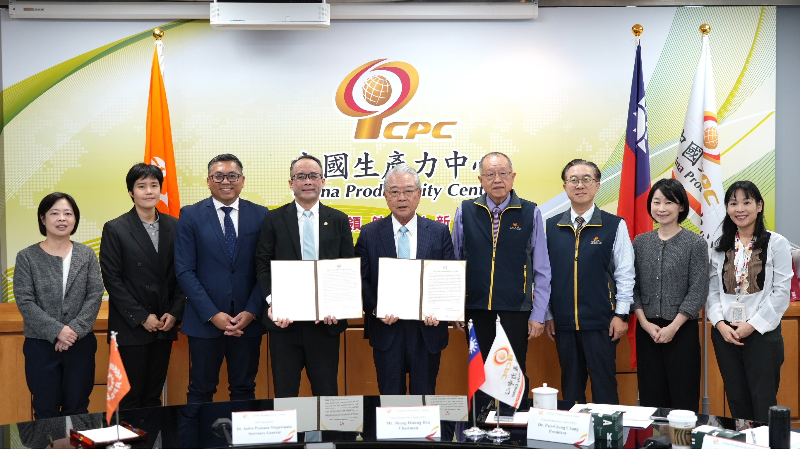 在拜會中華民國理事期間,雙方就APO 2030願景中之策略夥伴計畫入門指南(Strategic Partnership Program Primer, SPP Primer)進行意見交換並舉行簽署儀式,同時也針對全球供應鏈重組、數位轉型、淨零排放與包容性成長等關鍵議題,深入探討APO未來在會員國能力建構與實務推動上之角色定位外,會中,APO秘書處正式提出「APO培訓中心提案」,期盼未來善用該基地作為APO重要之區域型培訓與示範平台,系統性培育會員國在數位轉型、淨零轉型及永續發展領域之專業人才,強化區域整體競爭力。我方亦分享CPC在智慧製造、低碳轉型及協助企業升級方面之具體實務經驗,並表達持續支持APO發展、深化多邊合作之堅定承諾。